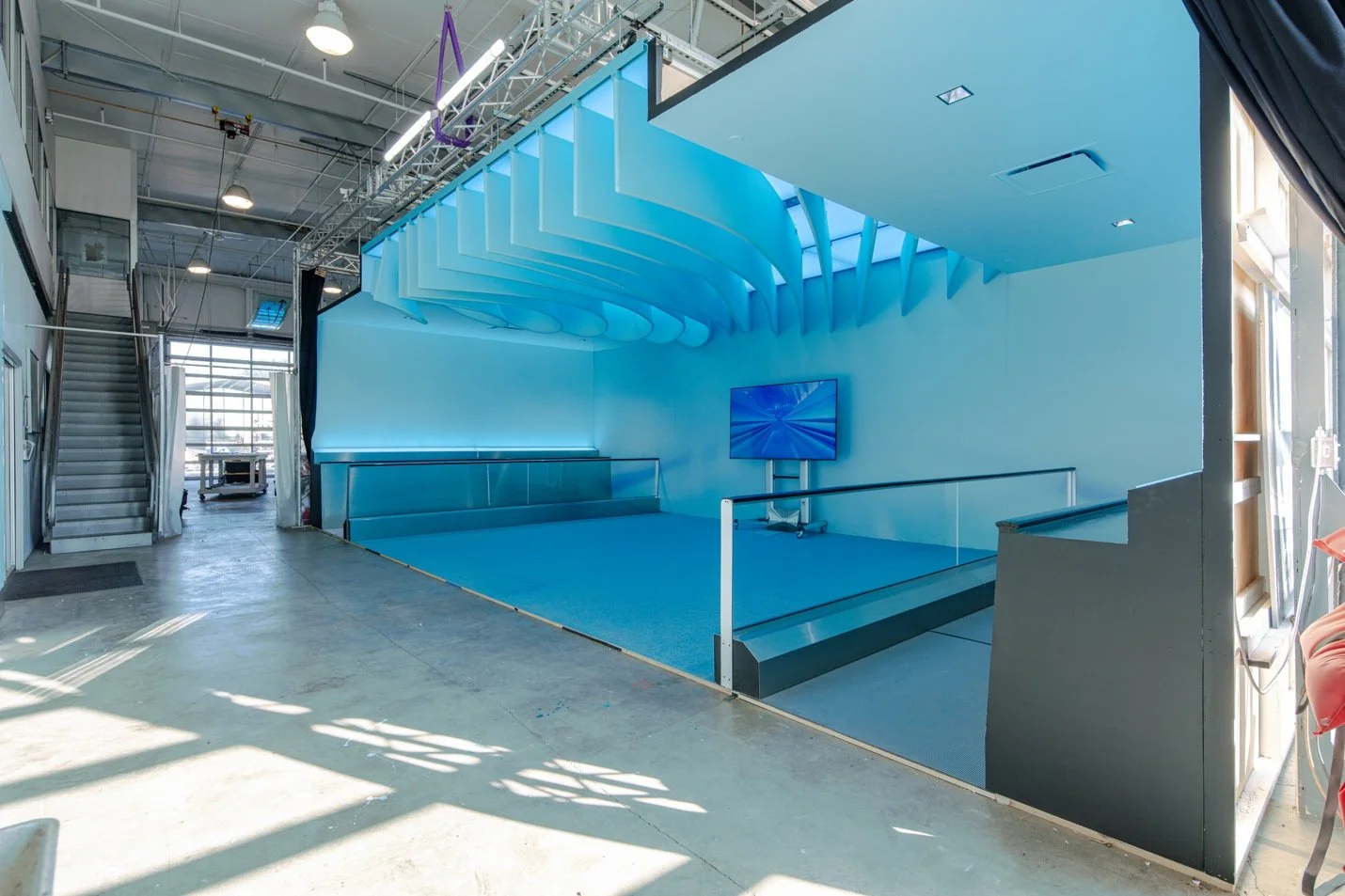 Gordon recognized that the space was as visually immersive as possible, but if we could touch on the sense of hearing as well, that would immerse the passengers into the artwork even further. We engaged sound consultants and developed a plan to integrate a separate sound system that worked alongside the airport announcement system.